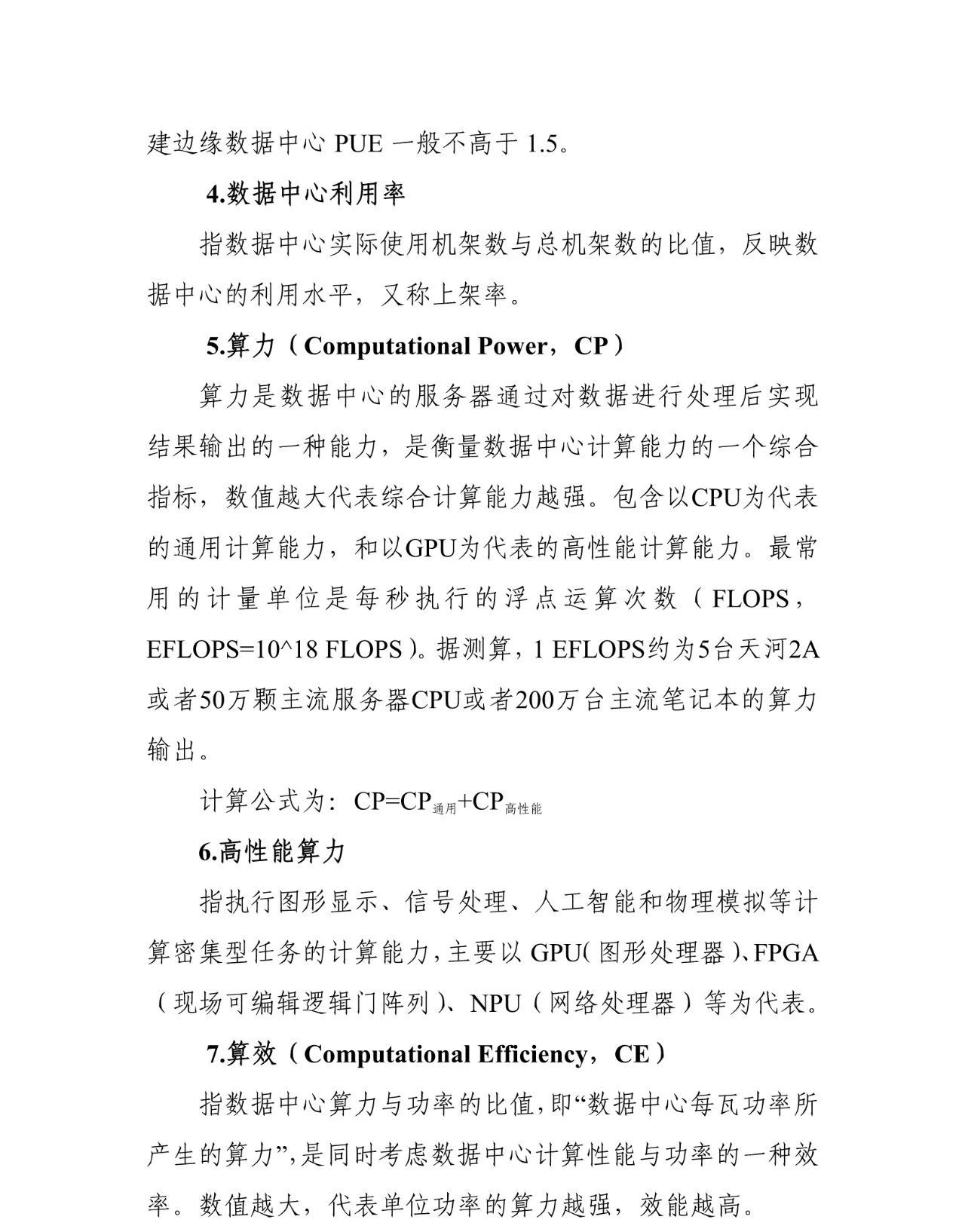 6、推動新型數(shù)據(jù)中心與網(wǎng)絡(luò)融合協(xié)同發(fā)展,具體有哪些考慮?目前,我國數(shù)據(jù)中心和網(wǎng)絡(luò)尚未形成良好的協(xié)同效應(yīng),網(wǎng)絡(luò)質(zhì)量在支撐算力調(diào)度、服務(wù)新動能方面仍有提升空間。《行動計劃》提出了“網(wǎng)絡(luò)質(zhì)量升級行動”,推動升級網(wǎng)絡(luò)質(zhì)量,促進(jìn)數(shù)網(wǎng)協(xié)同發(fā)展。重點聚焦國家、區(qū)域、邊緣各級網(wǎng)絡(luò)關(guān)鍵環(huán)節(jié),著重推動網(wǎng)絡(luò)質(zhì)量提升。一是持續(xù)優(yōu)化國家互聯(lián)網(wǎng)骨干直聯(lián)點布局,推進(jìn)東西部地區(qū)數(shù)據(jù)中心網(wǎng)絡(luò)架構(gòu)和流量疏導(dǎo)路徑優(yōu)化,支撐“東數(shù)西算”工程。二是支持國家樞紐節(jié)點內(nèi)的新型數(shù)據(jù)中心集群間網(wǎng)絡(luò)直連,促進(jìn)跨網(wǎng)、跨地區(qū)、跨企業(yè)數(shù)據(jù)交互。三是推動邊緣數(shù)據(jù)中心間,及與新型數(shù)據(jù)中心集群間的組網(wǎng)互聯(lián),促進(jìn)云、數(shù)、網(wǎng)協(xié)同發(fā)展。四是促進(jìn)數(shù)網(wǎng)協(xié)同發(fā)展,通過建立數(shù)網(wǎng)協(xié)同聯(lián)動機制,完善數(shù)據(jù)中心網(wǎng)絡(luò)監(jiān)測體系,發(fā)布網(wǎng)絡(luò)質(zhì)量監(jiān)測報告等具體舉措,持續(xù)推動數(shù)據(jù)中心網(wǎng)絡(luò)需求和供給有效對接,不斷提升數(shù)據(jù)中心網(wǎng)絡(luò)支撐能力。7、《行動計劃》首次提出算力指標(biāo),在優(yōu)化新型數(shù)據(jù)中心算力供給、推動算力調(diào)度方面有哪些考慮?隨著信息技術(shù)快速發(fā)展,數(shù)據(jù)中心輸出的算力逐漸成為驅(qū)動經(jīng)濟(jì)社會轉(zhuǎn)型的重要力量,以傳統(tǒng)機架規(guī)模指標(biāo)衡量產(chǎn)業(yè)發(fā)展水平已與當(dāng)前的發(fā)展形勢不相適應(yīng)。正如以發(fā)電量而非發(fā)電廠數(shù)量來衡量國家電氣化水平一樣,在數(shù)字經(jīng)濟(jì)時代,數(shù)據(jù)中心發(fā)展也需要新的指標(biāo)來衡量數(shù)據(jù)中心賦能經(jīng)濟(jì)社會各領(lǐng)域的水平。《行動計劃》首次引入算力指標(biāo)EFLOPS對數(shù)據(jù)中心發(fā)展質(zhì)量進(jìn)行評價,旨在引導(dǎo)數(shù)據(jù)中心從粗放的機架規(guī)模增長向提升算力的高質(zhì)量發(fā)展演進(jìn),更好推動數(shù)據(jù)中心的質(zhì)量變革與效率變革。一是針對單體數(shù)據(jù)中心,主要加快提升算力算效水平和部署高性能、智能算力,推進(jìn)算力供應(yīng)多元化。二是面向產(chǎn)業(yè)數(shù)字化,主要強化產(chǎn)業(yè)數(shù)字化轉(zhuǎn)型支撐能力,推動企業(yè)深度上云用云,支撐工業(yè)等重點領(lǐng)域加速數(shù)字化轉(zhuǎn)型。三是面向政務(wù)民生需求,主要完善公共算力資源供給,推動公共算力泛在應(yīng)用,降低算力使用成本。四是推動數(shù)云協(xié)同發(fā)展,通過建立新型數(shù)據(jù)中心算力算效評估體系,開展企業(yè)上云效果評價和新型數(shù)據(jù)中心支撐行業(yè)數(shù)字化轉(zhuǎn)型優(yōu)秀應(yīng)用評選等舉措,持續(xù)提升數(shù)據(jù)中心算力供給能力。8、未來3年,如何推動新型數(shù)據(jù)中心向綠色低碳方向發(fā)展?《行動計劃》著重引導(dǎo)新型數(shù)據(jù)中心走高效、清潔、集約、循環(huán)的綠色低碳發(fā)展道路。一是加快先進(jìn)綠色技術(shù)產(chǎn)品應(yīng)用。推動綠色數(shù)據(jù)中心創(chuàng)建、運維和改造,鼓勵應(yīng)用高效IT設(shè)備、制冷系統(tǒng)、供配電系統(tǒng)、輔助系統(tǒng)技術(shù)產(chǎn)品,加強動力電池梯次利用產(chǎn)品推廣應(yīng)用。二是持續(xù)提升高效清潔能源利用水平。引導(dǎo)新型數(shù)據(jù)中心向新能源發(fā)電側(cè)建設(shè),就地消納新能源,推動新型數(shù)據(jù)中心持續(xù)優(yōu)化用能結(jié)構(gòu)。建立健全綠色低碳數(shù)據(jù)中心標(biāo)準(zhǔn)體系,持續(xù)開展綠色低碳數(shù)據(jù)中心等級評估。三是優(yōu)化綠色管理能力。推動企業(yè)深化新型數(shù)據(jù)中心綠色設(shè)計、施工、采購與運營管理,全面提高資源利用效率。支持對高耗低效的數(shù)據(jù)中心加快整合與改造。