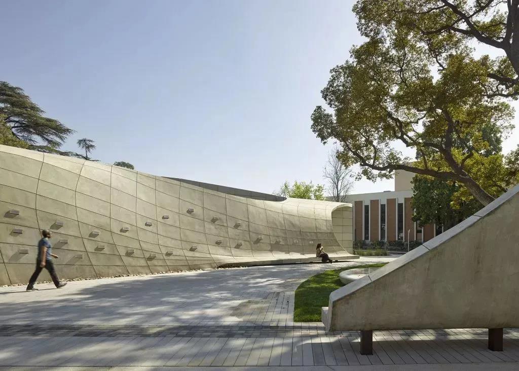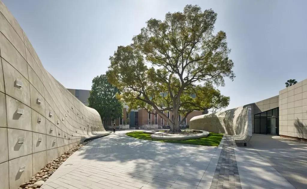游客可以在樹蔭下呼吸新鮮空氣。在兩堵混凝土墻的表面安裝了75個(gè)領(lǐng)導(dǎo)的背光板,以突出該設(shè)施的許多