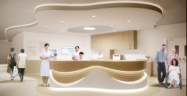 科室空間要根據(jù)科室的功能需求進(jìn)行設(shè)計(jì),在護(hù)士站要設(shè)置母嬰室、陪護(hù)等候區(qū)、直飲水區(qū);在產(chǎn)科、病房的選材、選色和燈光設(shè)計(jì)上盡量家庭化,還宜設(shè)置愛(ài)屋、母嬰同室等,而手續(xù)辦理區(qū)域宜使用木色HPL板營(yíng)造溫馨環(huán)境;在骨科病房及病人長(zhǎng)期仰臥的病房?jī)?nèi),要注意避免強(qiáng)炫光設(shè)計(jì),液晶電視進(jìn)行懸掛,適合臥床觀看;在兒保區(qū)域優(yōu)化等候區(qū),可以增設(shè)投影墻或互動(dòng)屏,通過(guò)影像互動(dòng)吸引兒童注意力,消除緊張情緒;在老年人、殘疾人或心腦血管康復(fù)病人的病房及其衛(wèi)生間內(nèi),應(yīng)距地面H=300MM高處各增設(shè)1-2處緊急呼叫(帶紅繩)鈕作為呼叫系統(tǒng)的補(bǔ)充和完善。