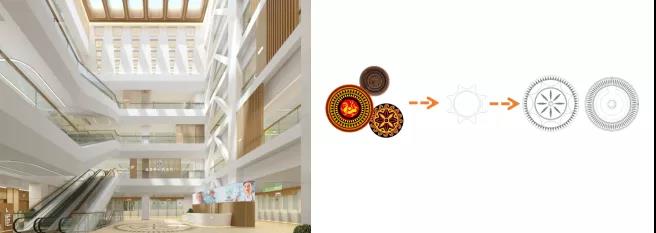 讓空間有文化底蘊(yùn)體現(xiàn)文化自信,從醫(yī)院定位、專(zhuān)家介紹、歷史文化展示等方面融入院區(qū)文化。在醫(yī)療街區(qū)域可考慮設(shè)置名醫(yī)展示墻,融合平面和立面造型,凸顯醫(yī)院人文形象;在服務(wù)臺(tái)后方可設(shè)置醫(yī)院形象墻,烘托醫(yī)院VI及醫(yī)院文化氛圍;在休息區(qū)可考慮引入環(huán)境圖形設(shè)計(jì),烘托輕松活躍的氣氛,同時(shí)嵌入醫(yī)院文化。