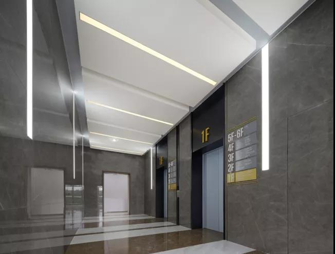 ▲ 圖50 專(zhuān)業(yè)化/尊貴化:綜合樓電梯廳線性燈光氛圍和標(biāo)識(shí)標(biāo)牌一體化