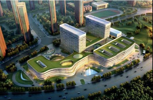 新龍澤院區(qū)項目場地為不規(guī)則的梭形,周邊環(huán)境復(fù)雜,對此,方案在前期規(guī)劃時結(jié)合城市空間序列研究、場地環(huán)境分析、聲環(huán)境模擬等方面解決了項目本身的復(fù)雜問題。方案以“城市客廳”為核心 ,將醫(yī)療行為與景觀空間融為一體,同時對各個環(huán)節(jié)進行把控,將低碳環(huán)保、節(jié)約成本、精準(zhǔn)施工的理念貫穿始終。
